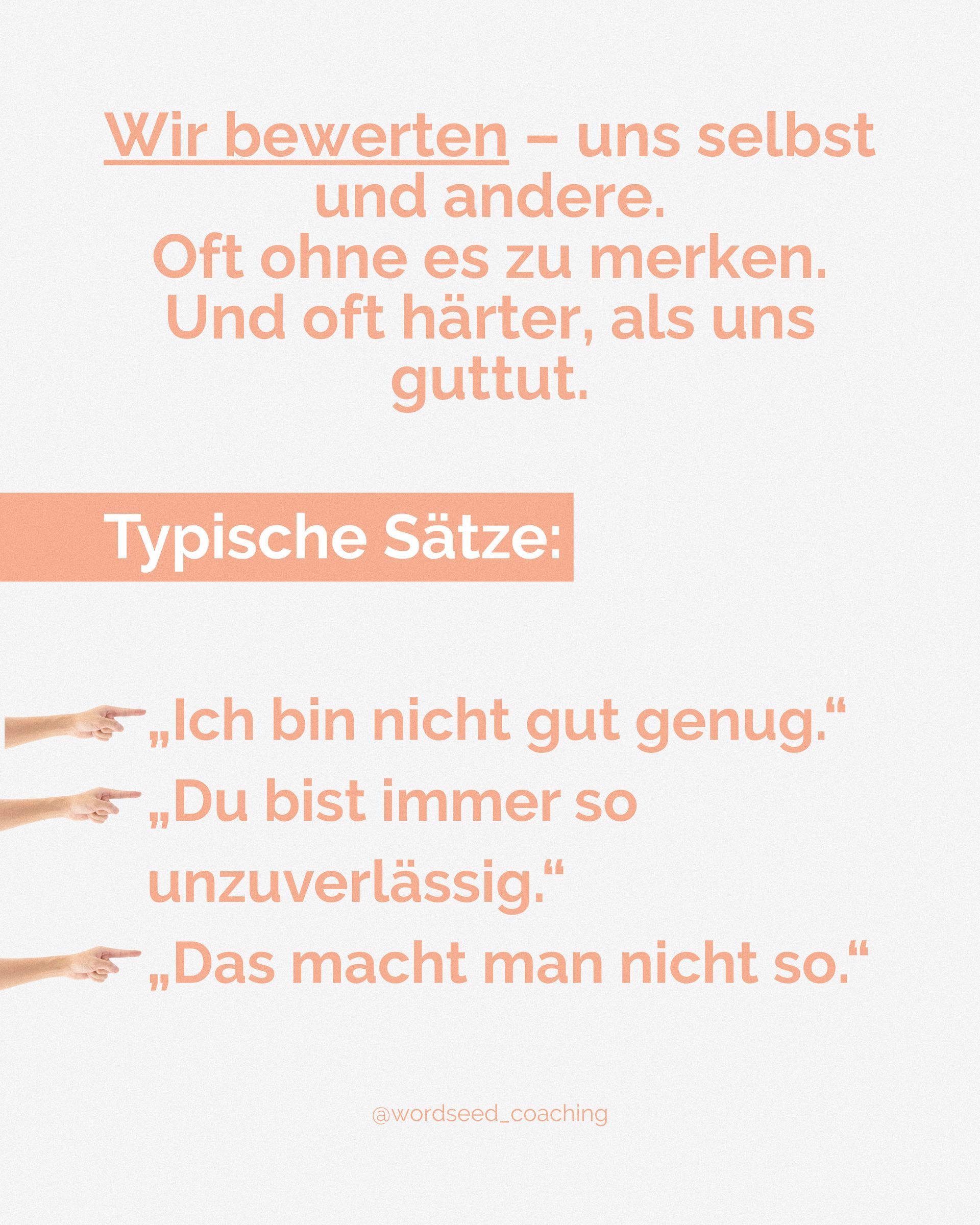 Wir bewerten. Uns selbst. Andere. Situationen.