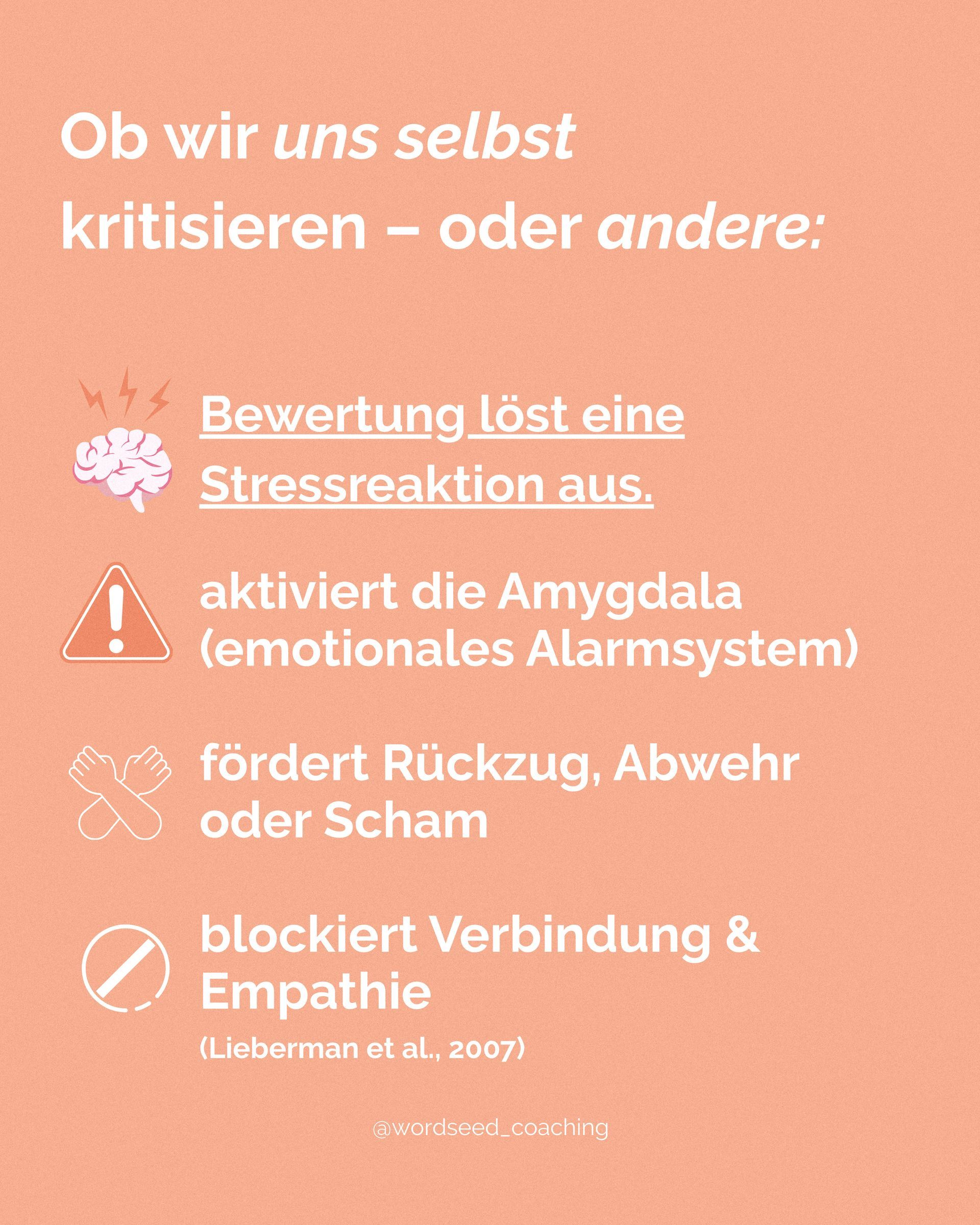Bewertung – egal ob gegen uns selbst oder andere – aktiviert die