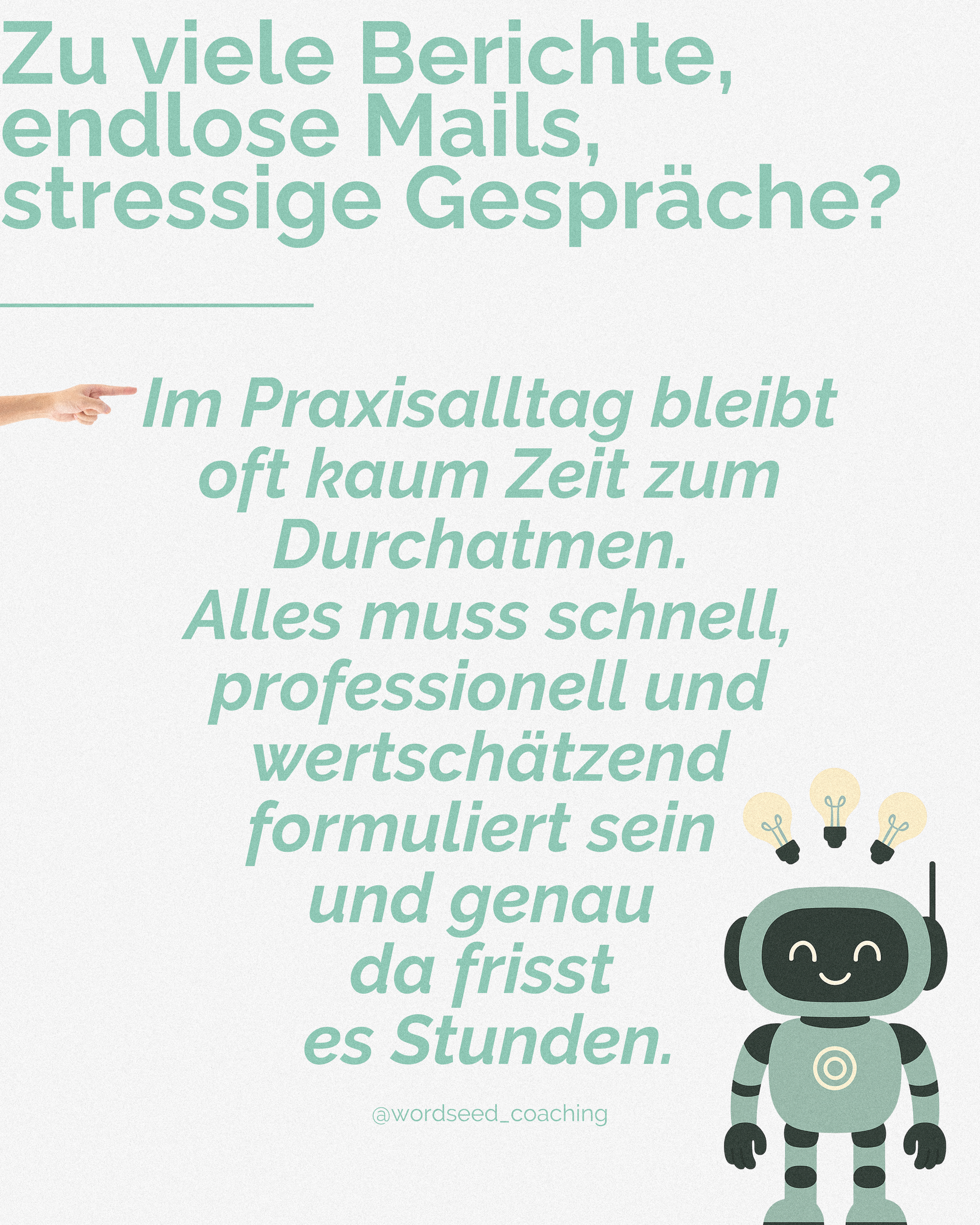 Zwischen Dokumentation, Telefonaten, Elternmails und Gesprächen mit Kolleg*innen dreht sich der Tag – und du drehst dich mit. Alles muss professionell, empathisch und fehlerfrei formuliert sein. Und genau das frisst Zeit.